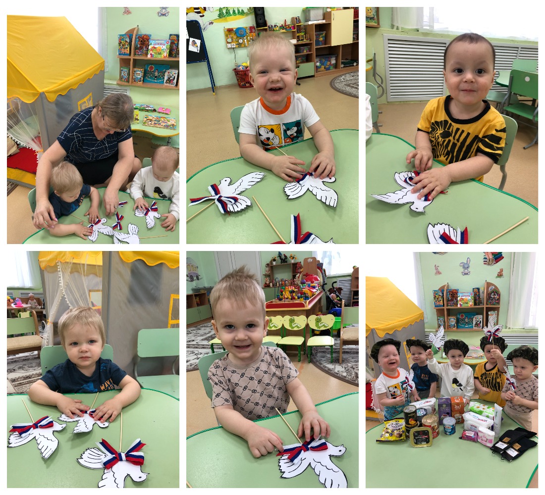 Самые маленькие воспитанники группы №4 под руководством воспитателя Комбаровой С.В. подготовили для участников СВО поздравления к 23 февраля и гуманитарную помощь.